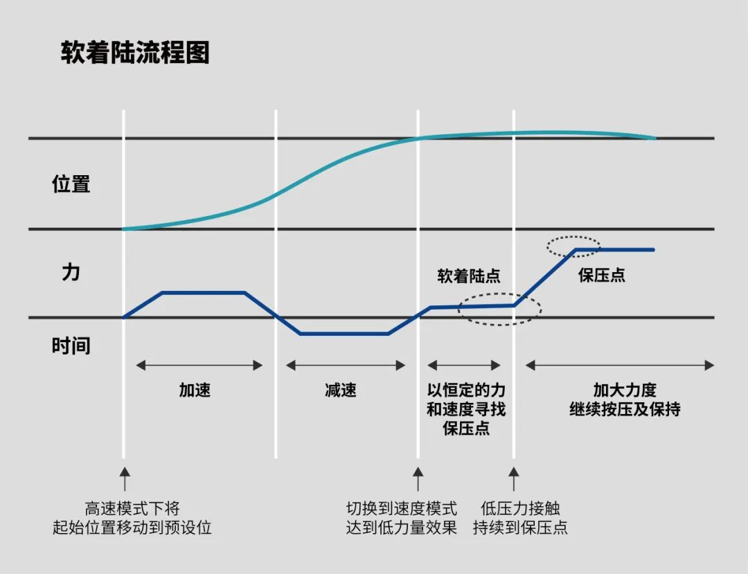 “軟著陸”目的是在執(zhí)行部件與加工零件接觸的過程中,實現(xiàn)力度可控,防止出現(xiàn)器件損壞或者由于壓力產(chǎn)生的其他問題。