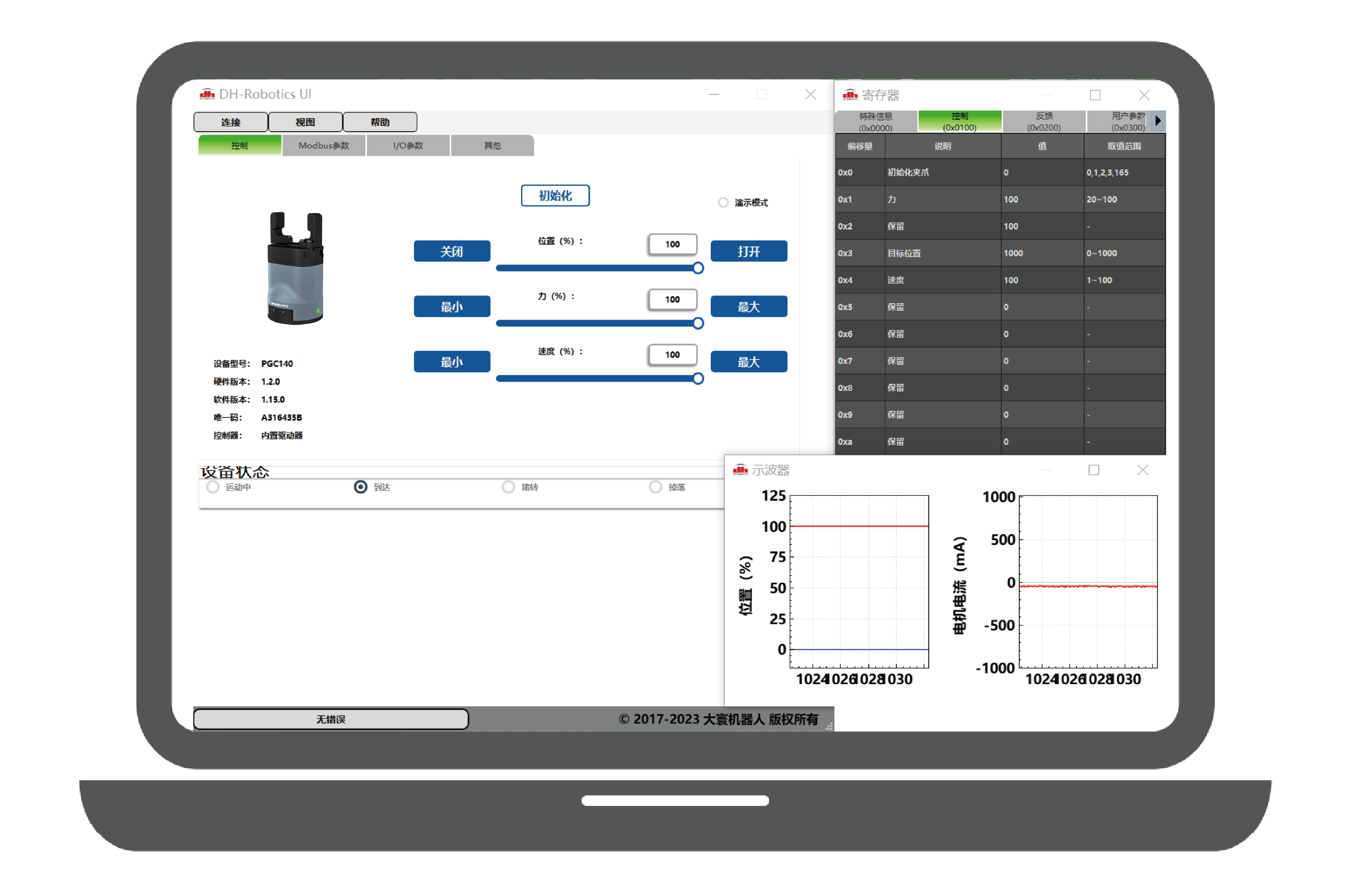 大寰自主開(kāi)發(fā)的上位機(jī)調(diào)試軟件,讓客戶在 PC 端就能方便快捷地完成各種功能參數(shù)調(diào)整、測(cè)試以及初始化設(shè)定,并能實(shí)時(shí)提供各種狀態(tài)信息,可大量節(jié)省生產(chǎn)線架線時(shí)間,并降低現(xiàn)場(chǎng)工程師的操作和運(yùn)維難度。